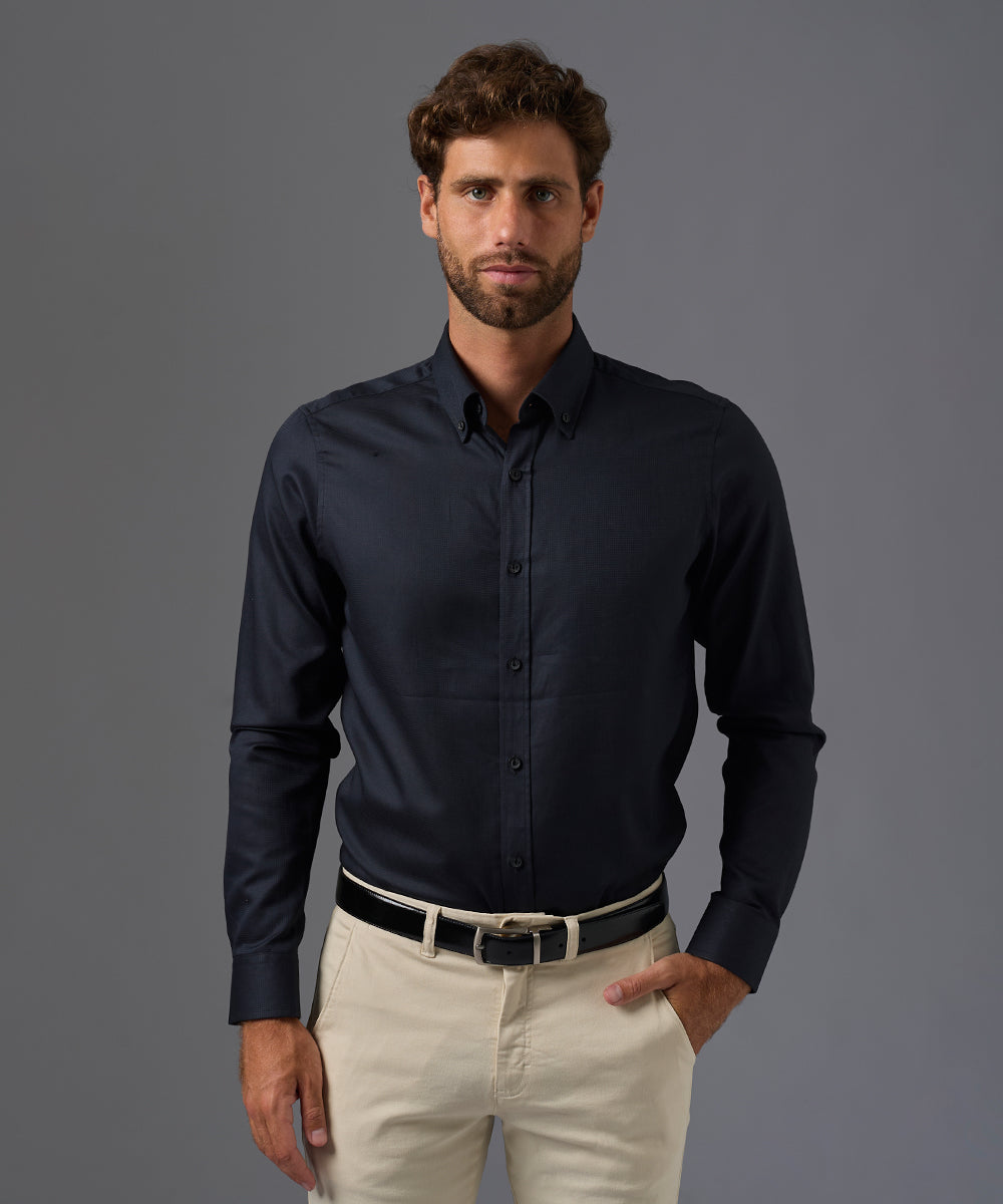 CAMISA MANGA LARGA CUELLO MICRO BUTTONDOWN CLASSIC FIT AZUL OI24
